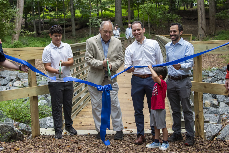 “We are very happy with this bridge,” said Kemp Mill Civic Association Vice President and local resident Jonathan Aghion. “It is just a beautiful structure in a beautiful place, among a wooded area that connects our neighborhoods. We’ve decided to dedicate the bridge to a neighbor who has passed away, Nicki Toys, so that her children and friends can visit her and be reminded of the impact her life has had when they walk through here.”