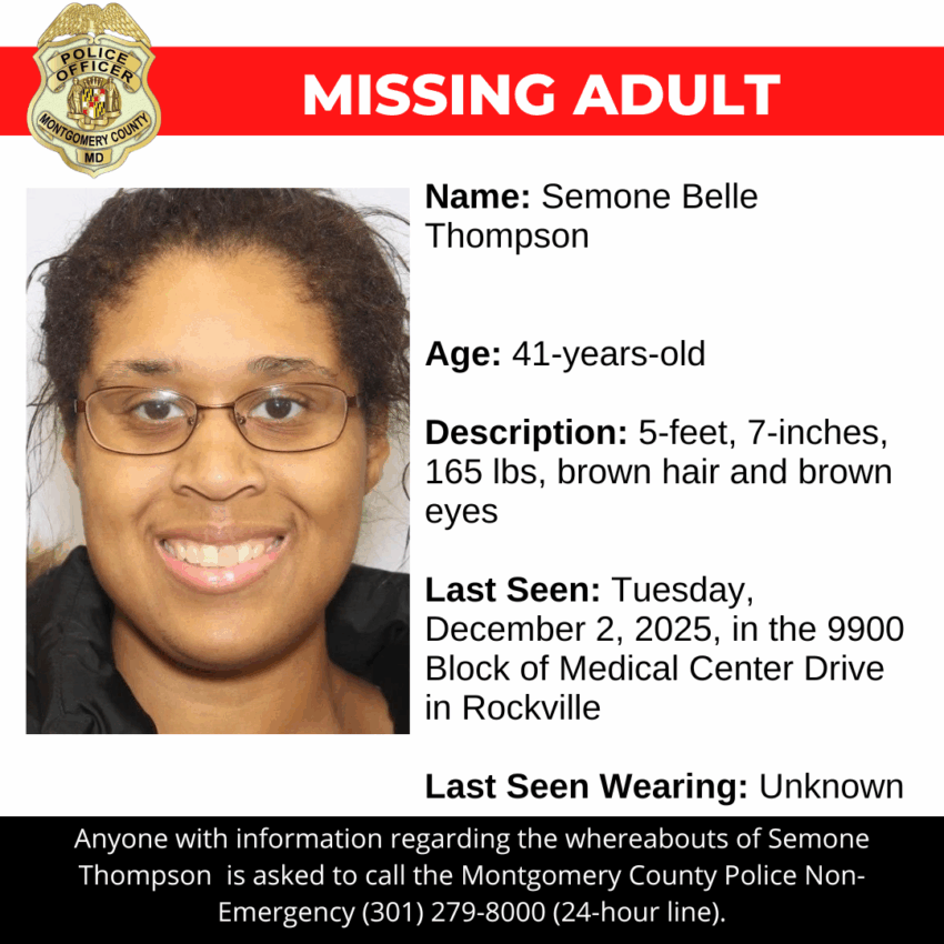 Gaithersburg, MD – Detectives from the Montgomery County Department of Police – 6th District Investigative Section are asking for the public’s assistance in locating Semone Belle Thompson, a missing 41-year-old.Â
