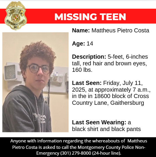 Gaithersburg, MD – The Montgomery County Department of Police – Special Victims Investigations Division is asking for the public’s assistance in locating a missing 14-year-old.