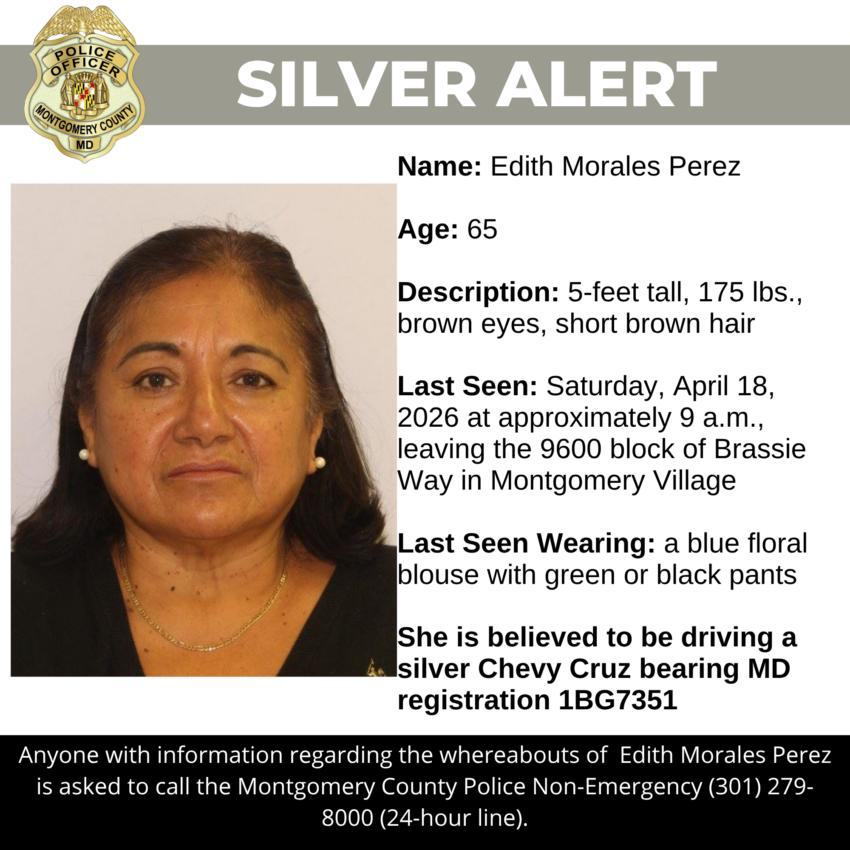 Gaithersburg, MD – Detectives from the Montgomery County Department of Police – 6th District Investigations Division are asking for the public’s assistance in locating Edith Morales Perez, a missing 65-year-old from Montgomery Village.