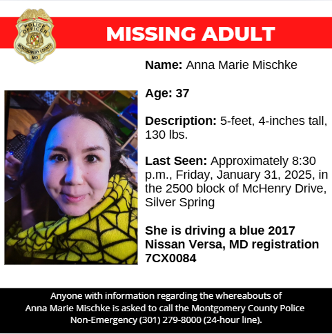Gaithersburg, MD – Detectives from the Montgomery County Department of Police – 3rd District Investigative Section are asking for the public’s assistance in locating a missing Silver Spring woman.