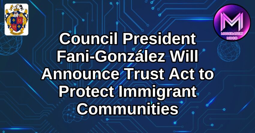 Montgomery County Council President Natali Fani-González will be joined by Montgomery County Executive Marc Elrich, Police Chief Marc Yamada, community and nonprofit leaders and councilmembers to announce the introduction of the Trust Act on Thursday, Dec. 4 at 12:30 p.m.