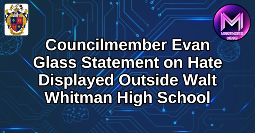 ROCKVILLE, Md., Jan. 16, 2026—Councilmember Evan Glass released the following statement today regarding the anti-Muslim and anti-Palestinian hate displayed outside Walt Whitman High School: