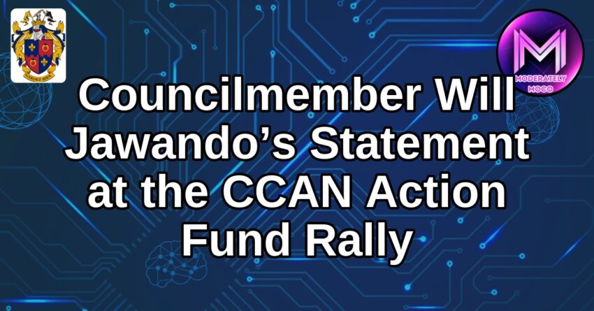 Montgomery County At-Large Councilmember Will Jawando made the following remarks today at a rally organized by the Chesapeake Climate Action Network Action Fund at Veterans Plaza in downtown Silver Spring.