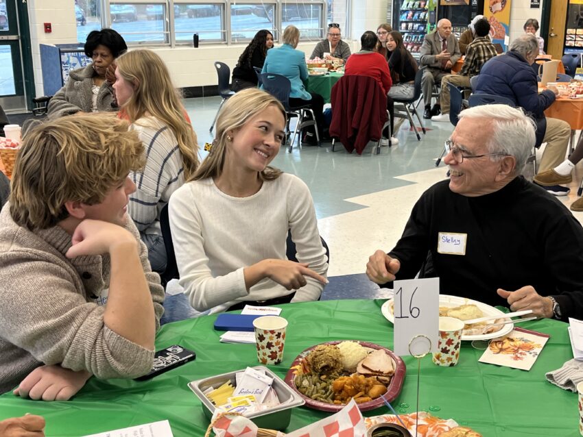 “The food is good, but this is what I’m here for,” said Jean, motioning to the students at her table. “I enjoy being around the kids. They have so much enthusiasm and it’s nice talking to them about what they’re going to do in life.”