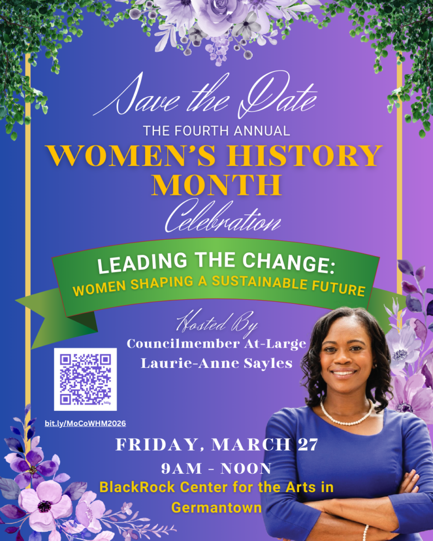 Montgomery County Councilmember At-Large Laurie-Anne Sayles will host her fourth annual Women’s History Month celebration, highlighting the achievements of women driving sustainability, innovation, and equity across the region. The program will include: