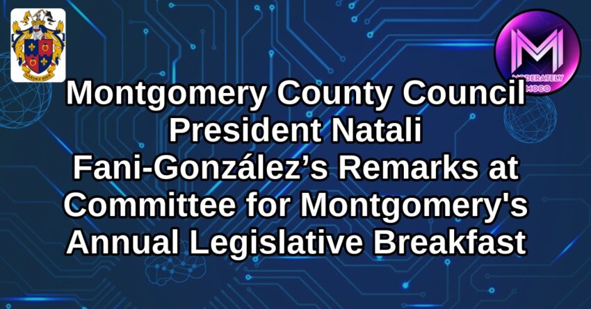Today Montgomery County Council President Natali Fani-González provided remarks at the Committee for Montgomery’s Legislative Breakfast. This event brings together leaders from across Maryland and is considered the unofficial kickoff of the 2026 Legislative Session.