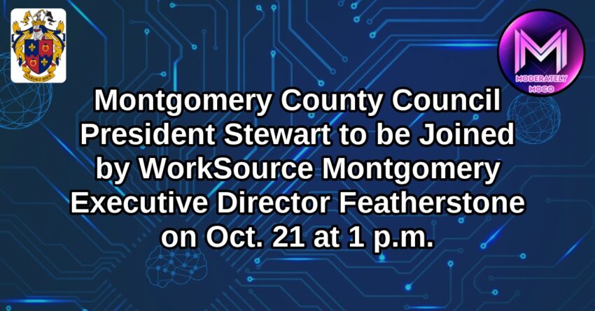 ROCKVILLE, Md., Oct. 20, 2025—On Tuesday, Oct. 21 at 1 p.m., Montgomery County Council President Kate Stewart will hold a briefing to discuss Council and County matters. She will be joined by Anthony Featherstone, executive director at WorkSource Montgomery to discuss the services being provided to County residents searching to expand or start a new career, including the resources available at the Mobilize Montgomery Federal Workforce Career Center (FWCC).