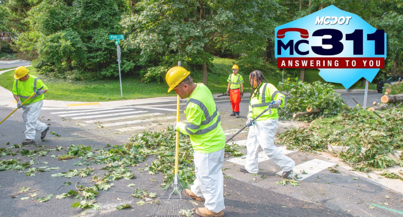 Residents can report downed trees or debris on County-maintained roads and rights of way by calling 311 from 7 a.m.-7 p.m. Monday-Friday (240-777-0311 if calling from outside the County) or submitting a service request online .