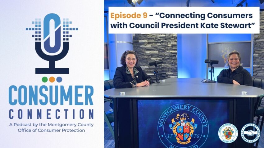 The Montgomery County Office of Consumer Protection (OCP) has released a new episode of its Consumer Connection podcast titled “Connecting Consumers with County Council President Kate Stewart.”