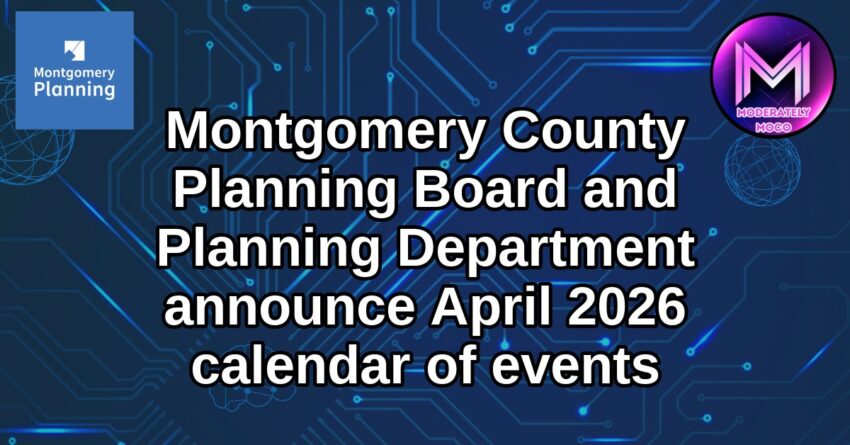 Wheaton, Md. – The Montgomery County Planning Board and the Montgomery County Planning Department, both part of The Maryland-National Capital Park and Planning Commission (M-NCPPC), announced their April 2026 calendar of events and meetings.