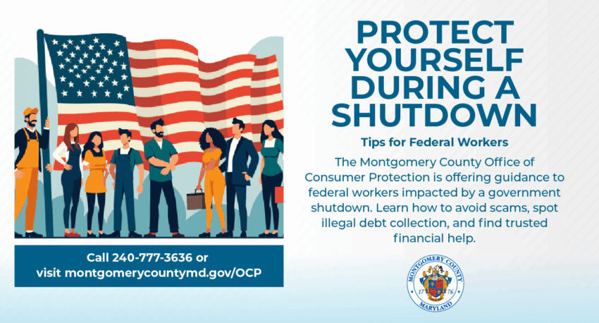 The Montgomery County Office of Consumer Protection (OCP) alerts federal employees and their families on ways to avoid financial scams during the current government shutdown.