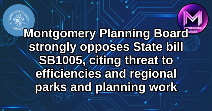 Wheaton, Md. — The Montgomery County Planning Board, one half of The Maryland-National Capital Park and Planning Commission (M-NCPPC or The Commission), expresses its strong opposition to Senate Bill 1005. The Planning Board outlined its position at its meeting on Thursday, March 12 and issued the following statement: