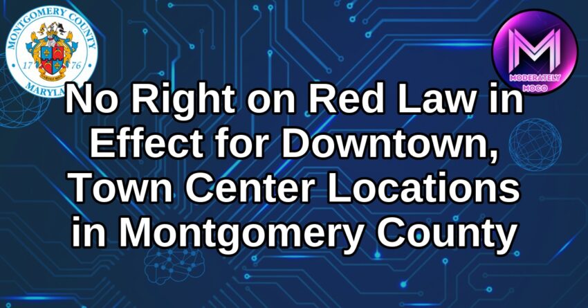 The Montgomery County Department of Transportation (MCDOT) is alerting residents that as of Tuesday, July 1, drivers are prohibited from making right turns at red traffic signals in designated downtown and town center areas of Montgomery County.