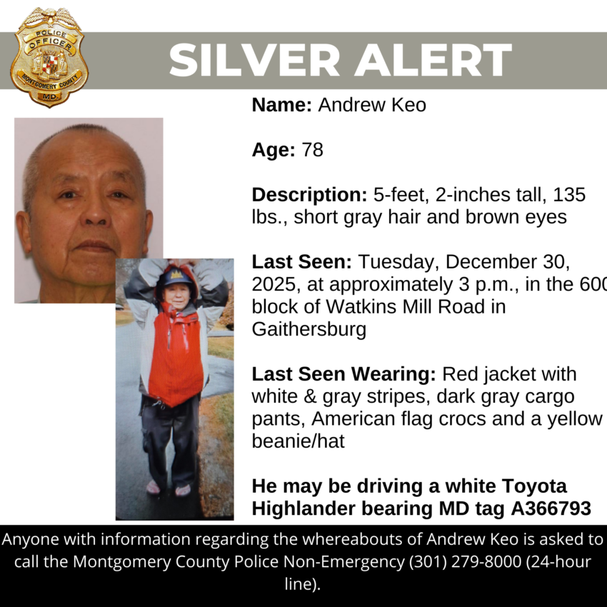 Gaithersburg, MD – Detectives from the Montgomery County Department of Police – 6th District Investigative Section are asking for the public’s assistance in locating Andrew Keo, a missing 78-year-old.
