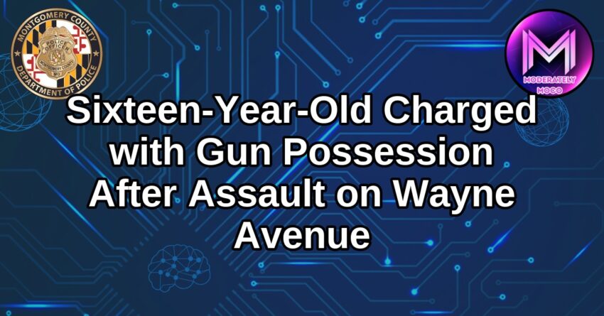 Gaithersburg, Maryland –Montgomery County Department of Police – 3rd District officers have arrested and charged a 16-year-old with gun possession following an assault that led to a double stabbing on Wayne Avenue in Silver Spring.