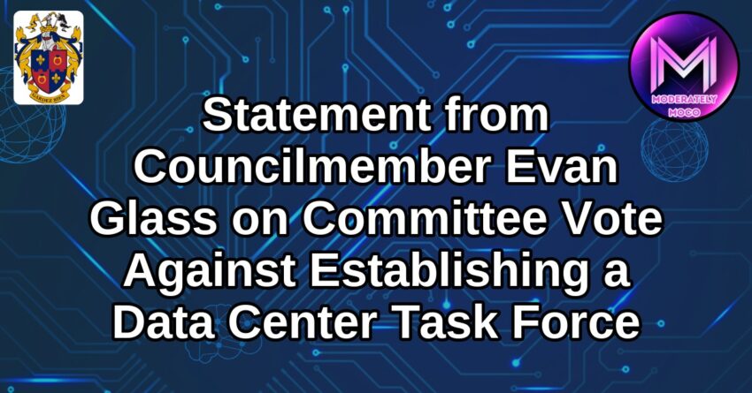 ROCKVILLE, Md., March 9, 2026—Councilmember Evan Glass issued the following statement regarding the joint Committee worksession today on Bill 4-26, Buildings – Task Force on Data Centers: